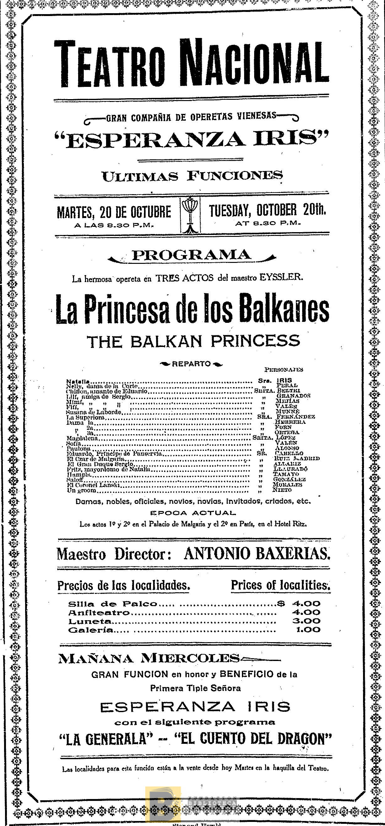 2367. La Princesa de los Balkanes: opereta en tres actos, del maestro Eyssler