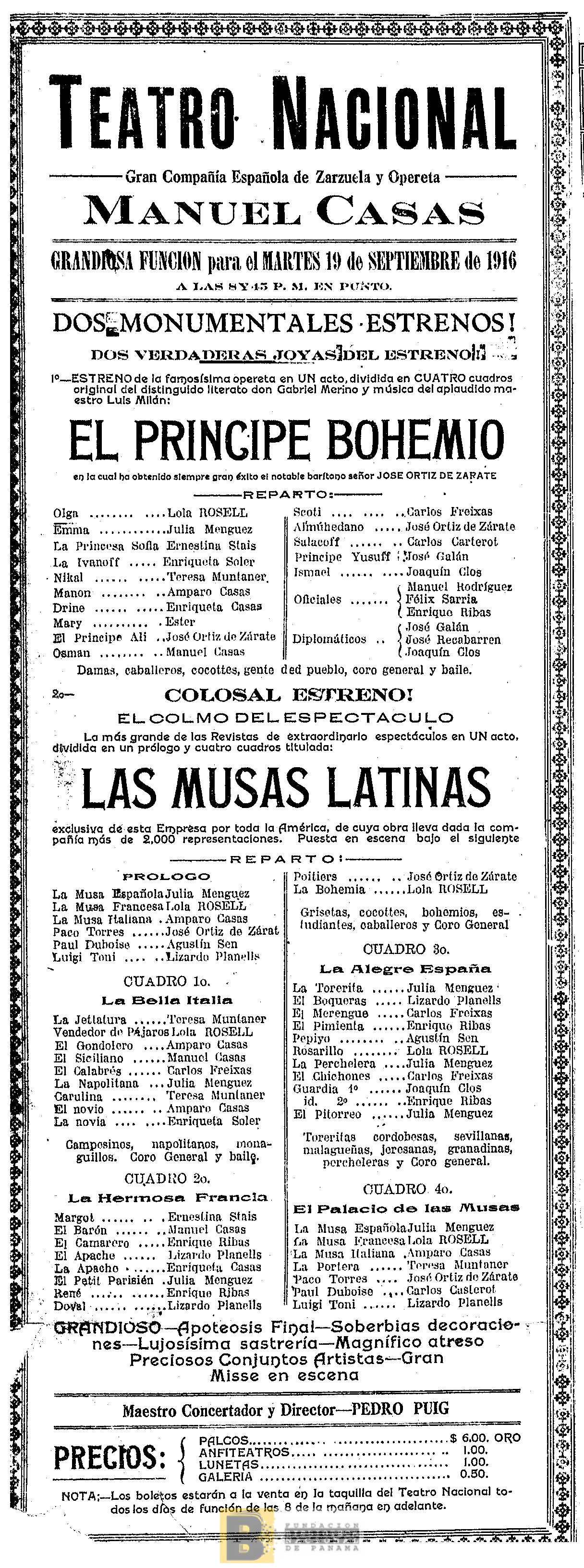2369. El príncipe bohemio: opereta en un acto, dividida en cuatro cuadros, original del distinguido literato [Manuel] Merino y música del aplaudido maestro [Rafael] Millán