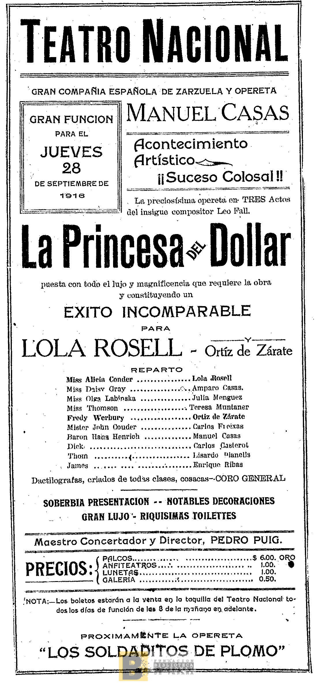 2365. La Princesa del dollar: opereta en tres actos, del insigne compositor Leo Fall
