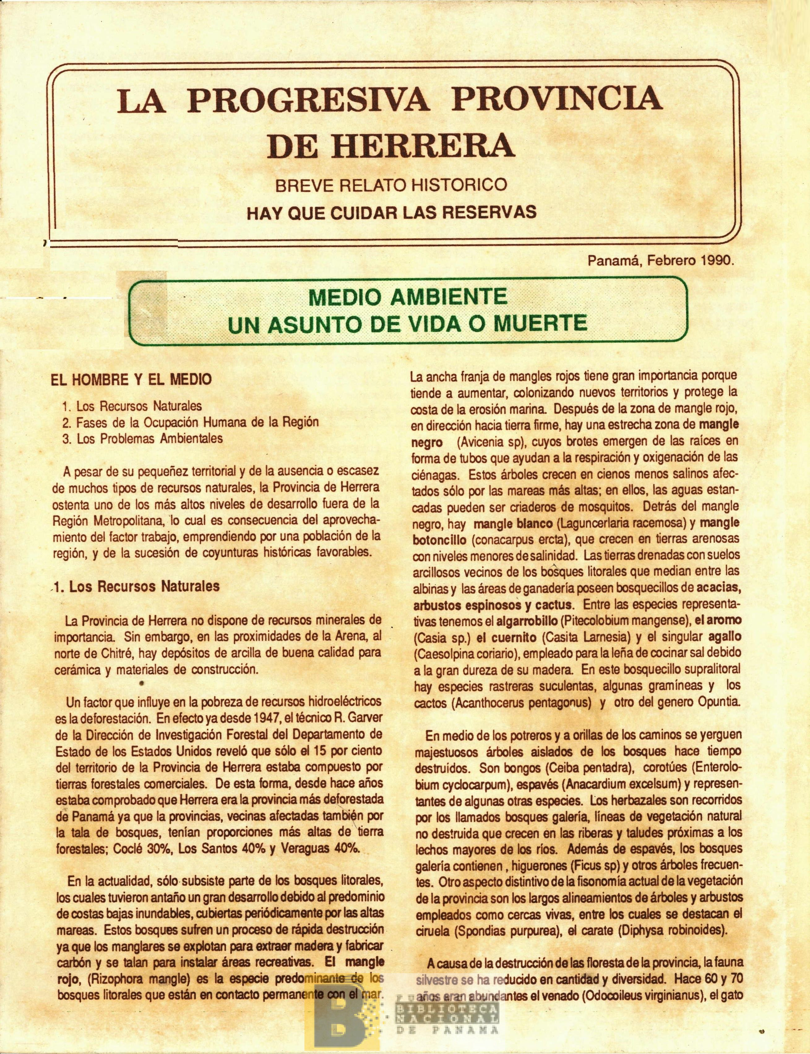 2419. La progresiva provincia de Herrera: breve relato histórico, hay que cuidar las reservas |