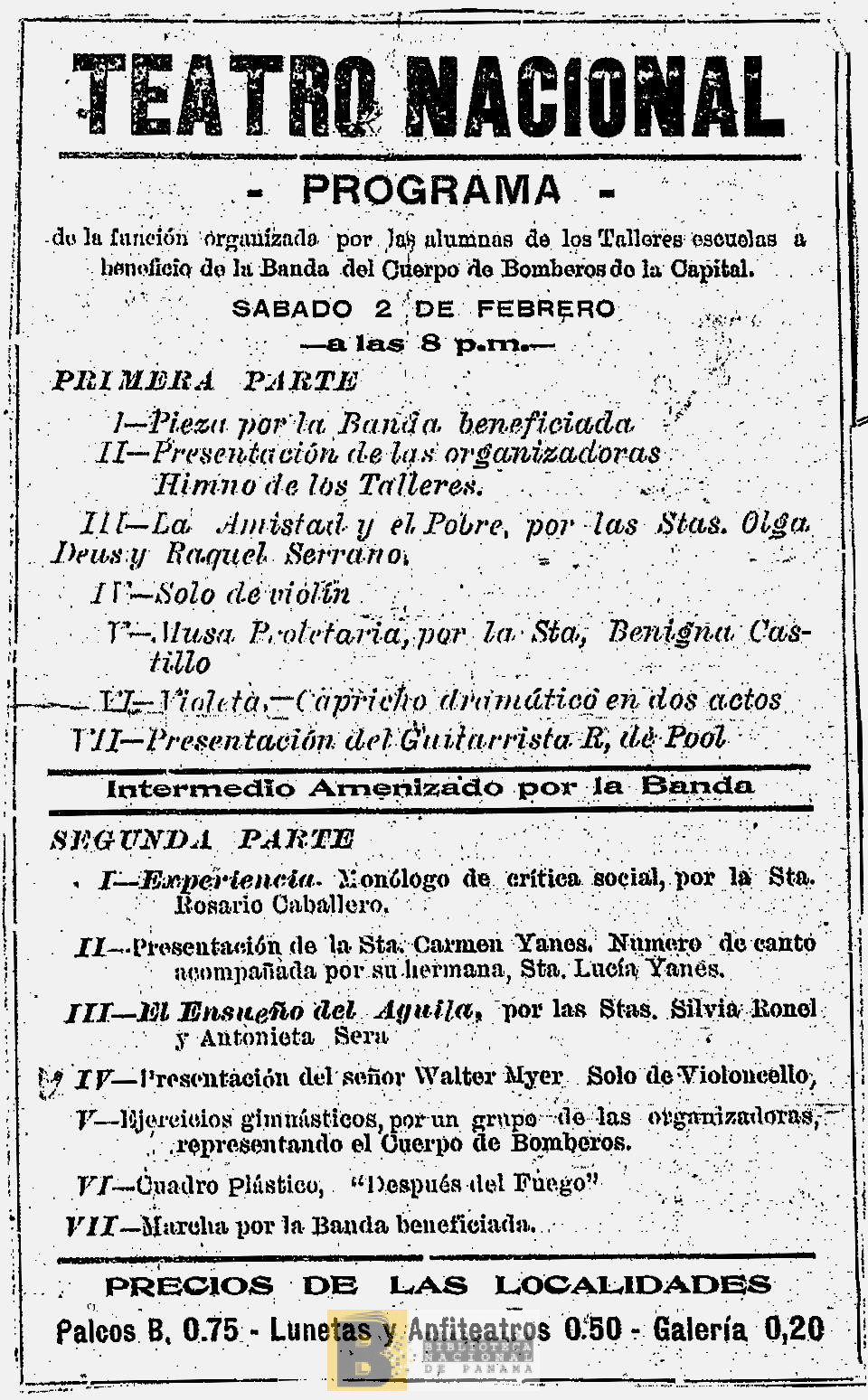2408. Programa de la velada lírico literaria a beneficio de la obra del Dr. Manuel E. Amador