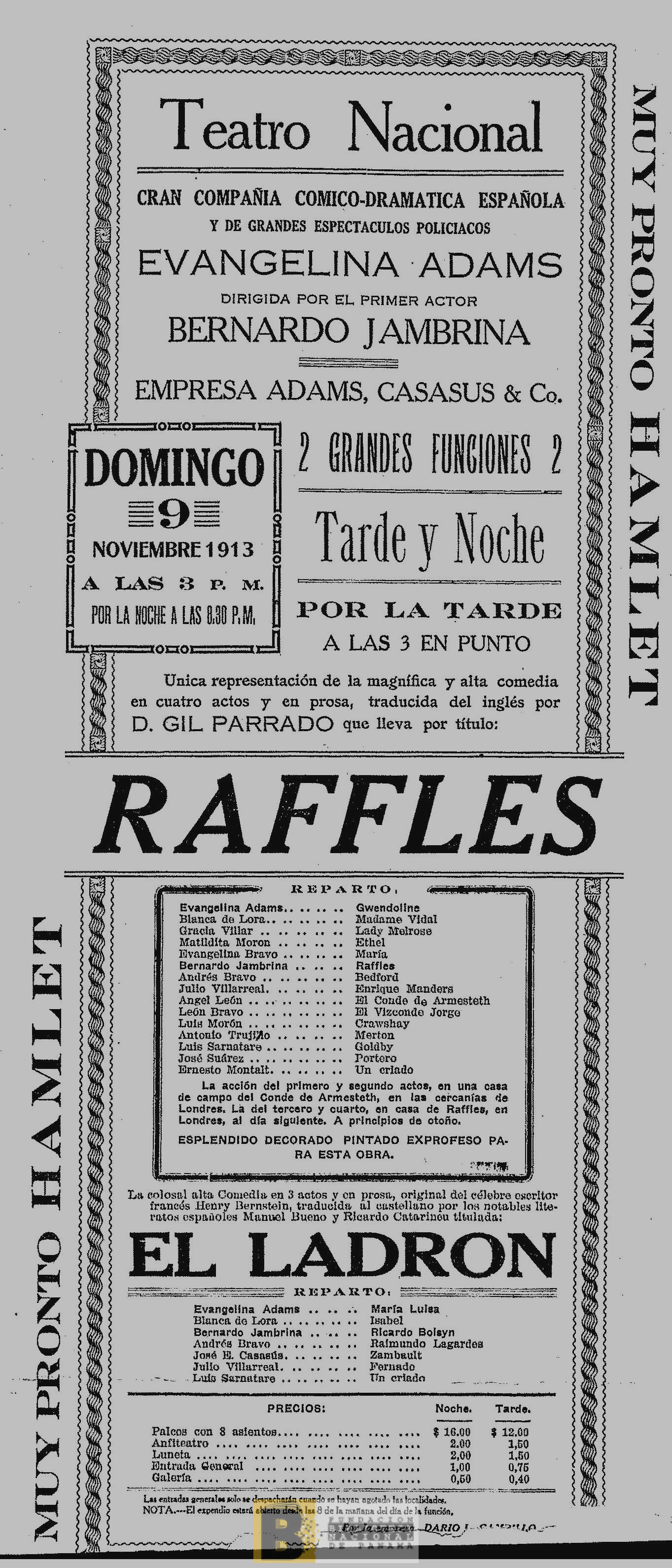 2474. Raffles: comedia en cuatro actos y en prosa, traducida del inglés por D. Gil Parrado [seud.] ; El Ladrón : comedia en 3 actos y en prosa, original del célebre escritor francés Henry Bernstein