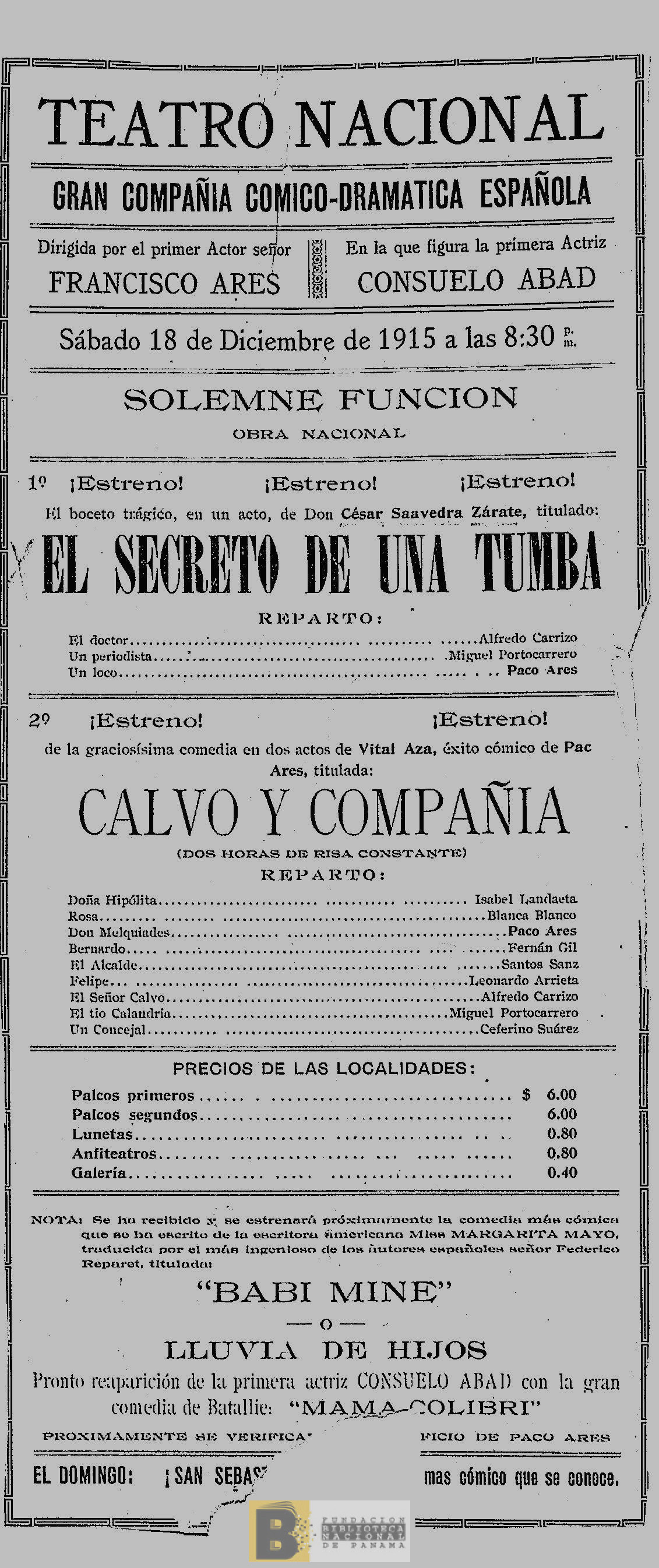 2615. El secreto de una tumba: Boceto trágico en un acto de Don César Saavedra Zárate ; Calvo y Compañía: Comedia en dos actos de Vital Aza