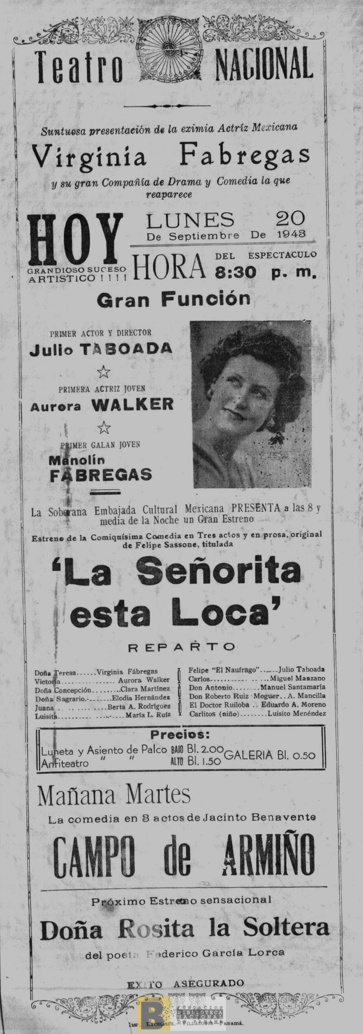 2643. La Señorita está loca: comedia en tres actos y en prosa, original de Felipe Sassone