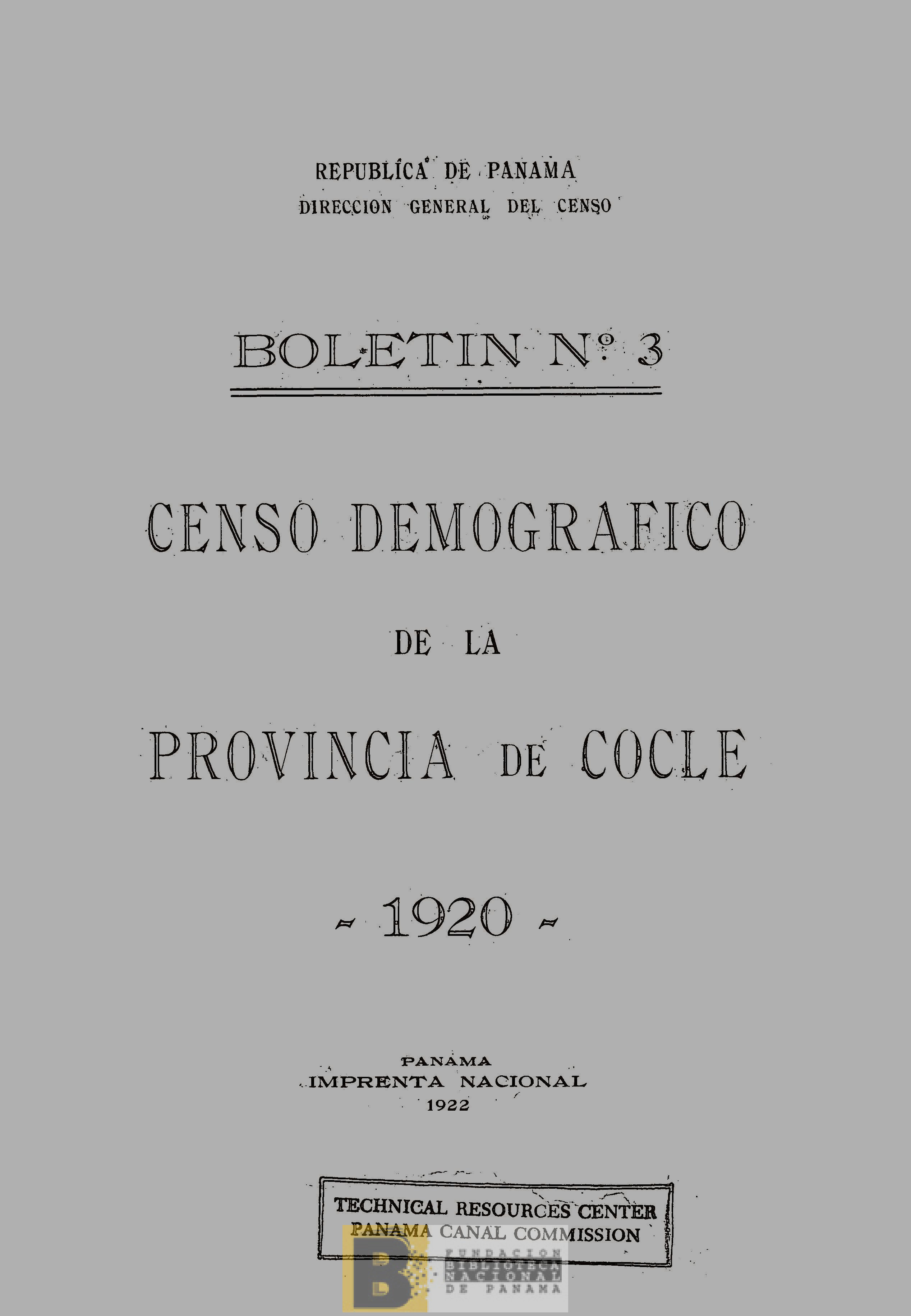 360. Censo demográfico de la provincia de Coclé, 1920