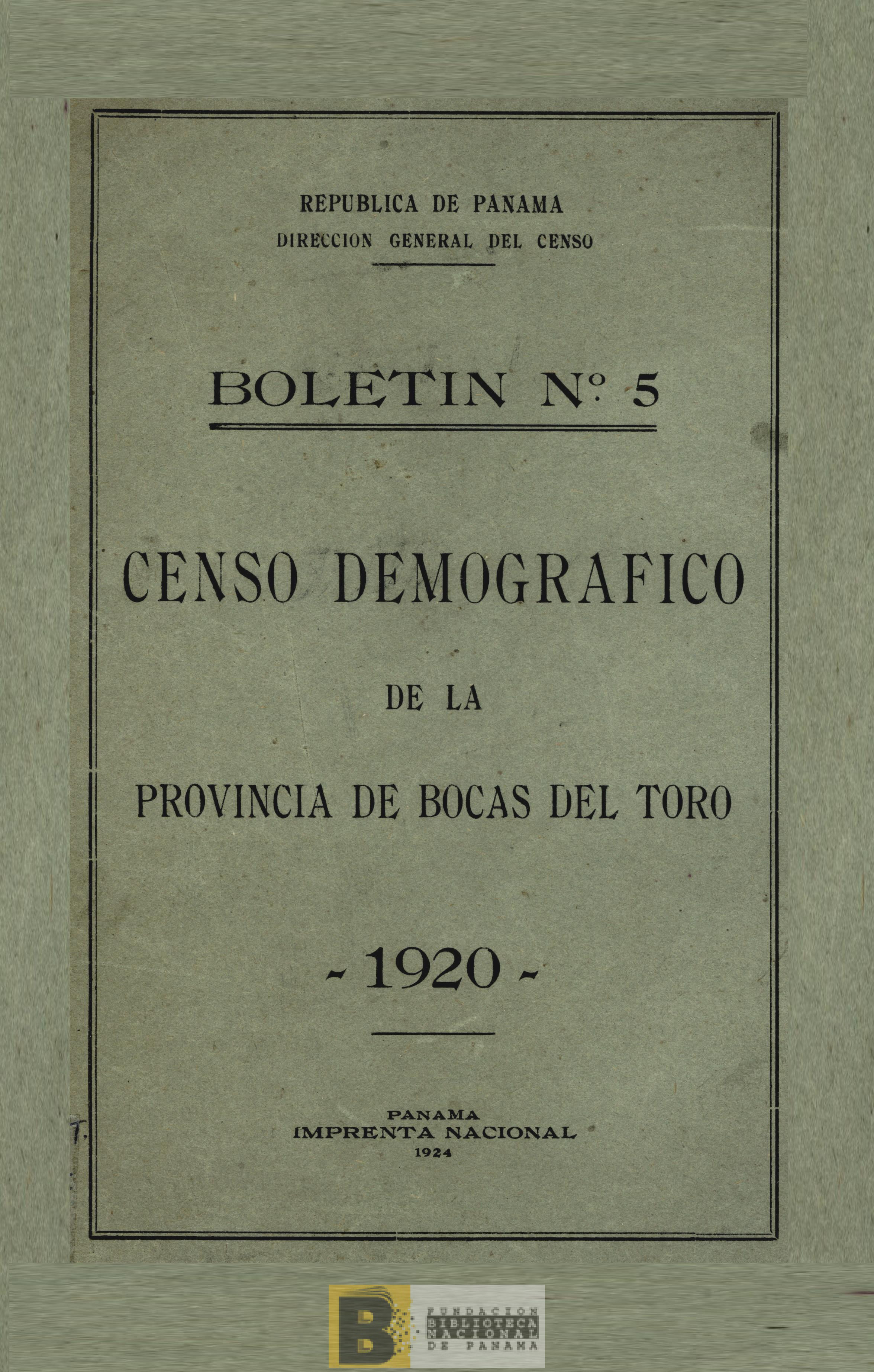 359. Censo demográfico de la provincia de Bocas del Toro, 1920