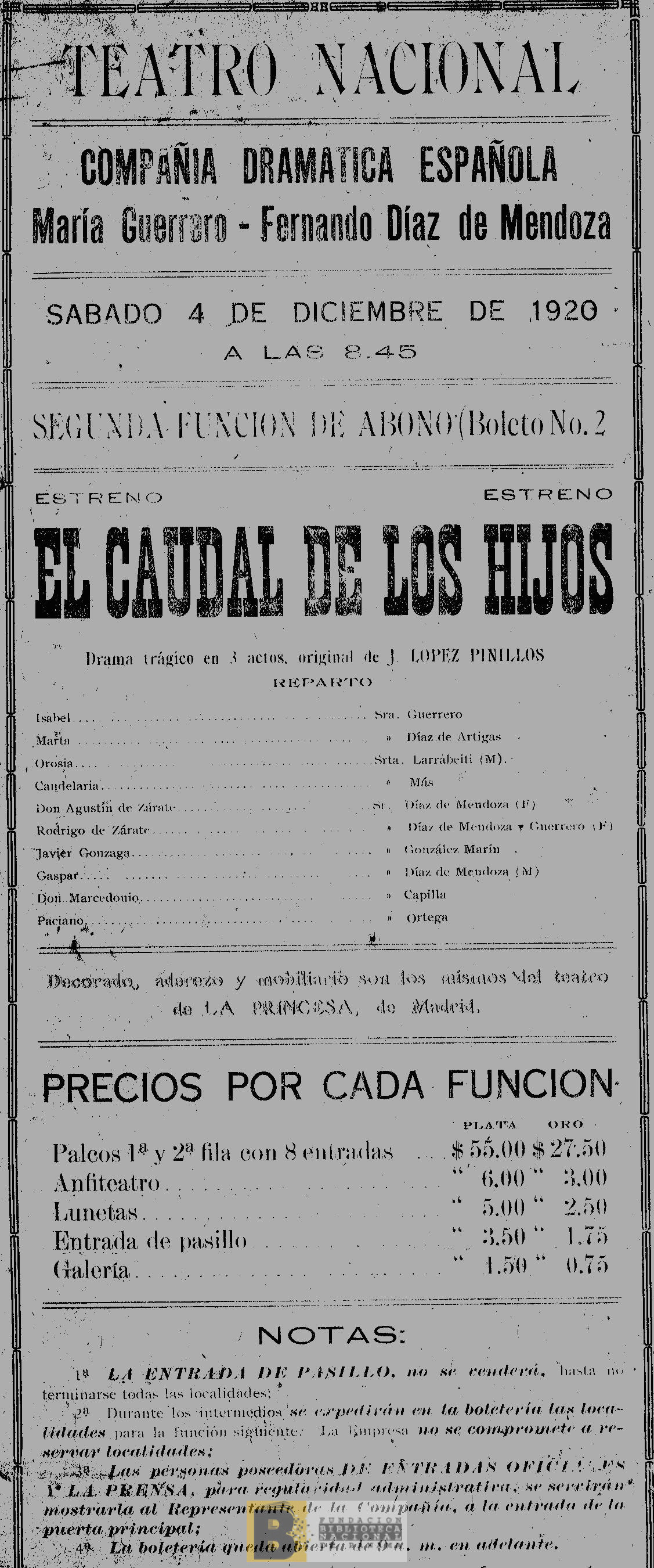 351. El caudal de los hijos: drama trágico en 3 actos, original de J. López Pinillos