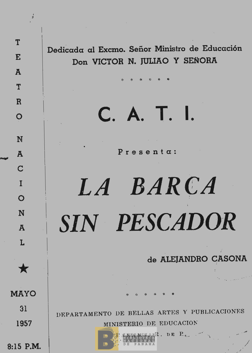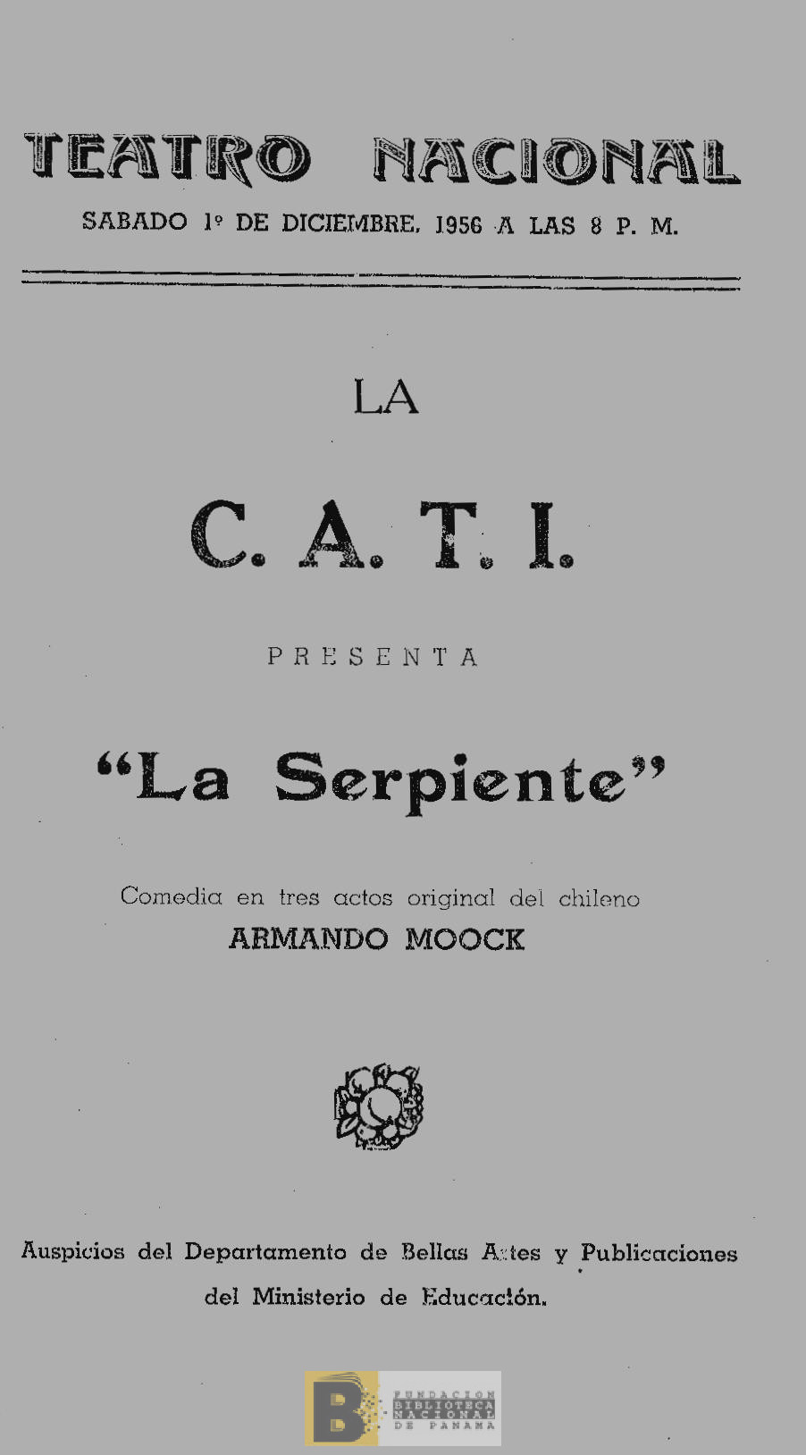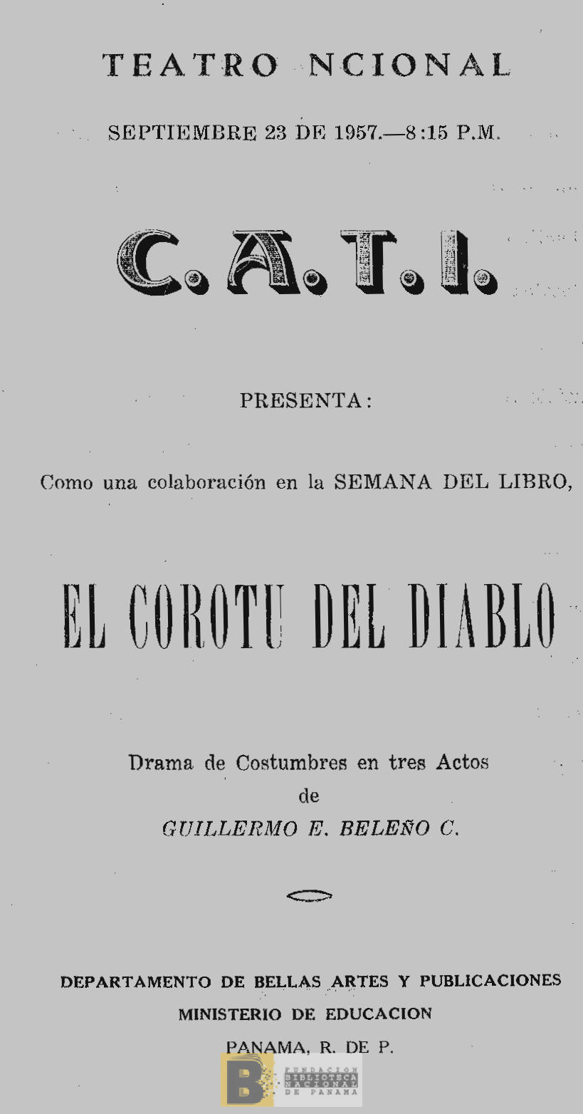 349. C.A.T.I presenta como una colaboración en la Semana del libro, "El corotú del diablo" drama de costumbres de Guillermo E. Beleño C
