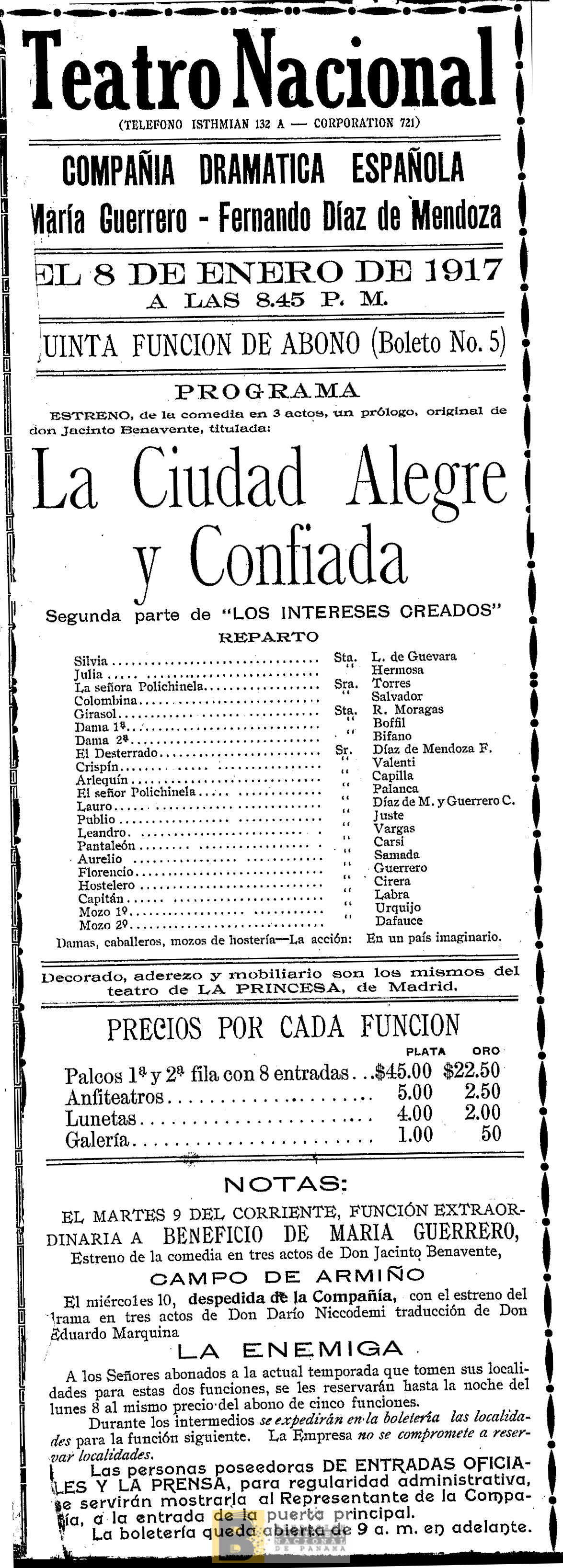399. La ciudad alegre y confiada: comedia en tres actos, un prólogo, original de Don Jacinto Benavente