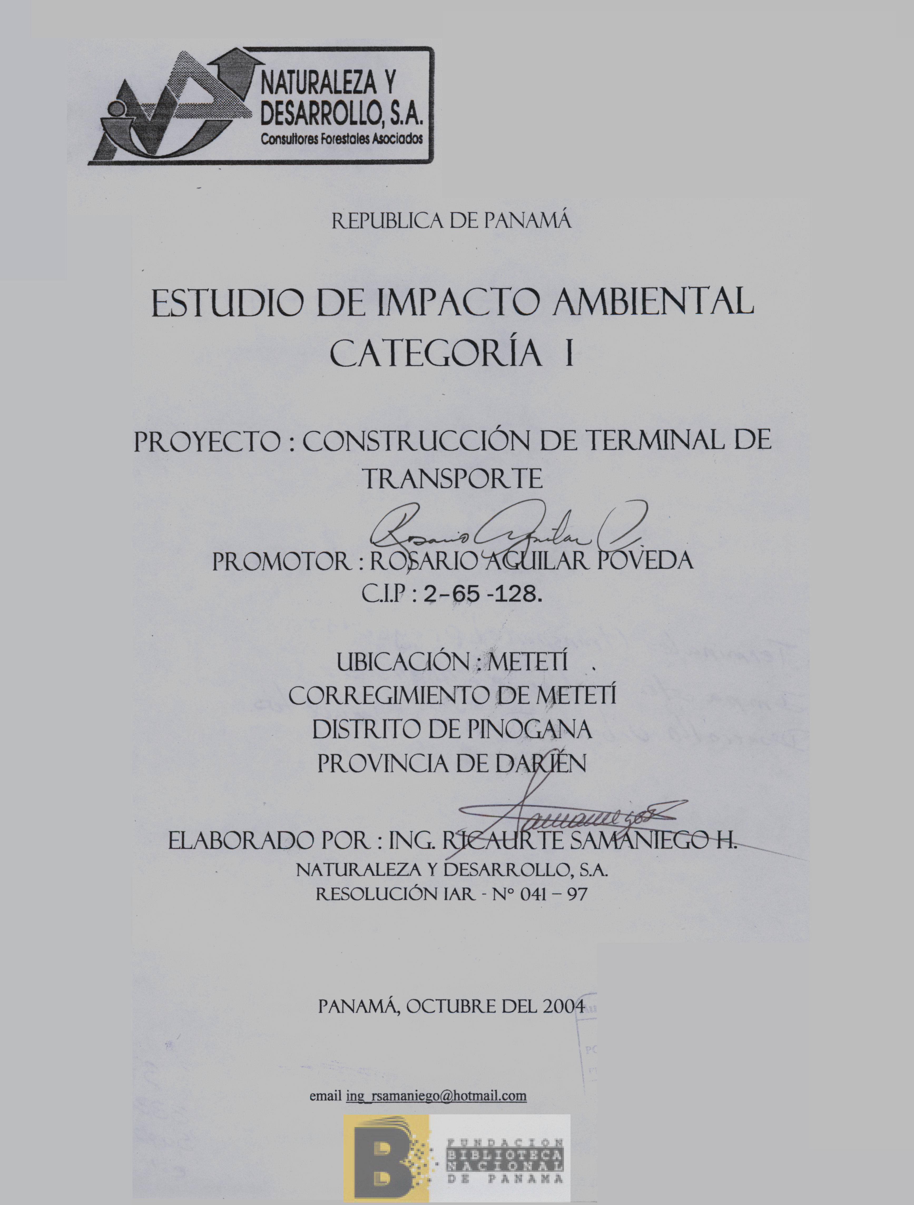 461. Complementación de estudio: estudio de impacto ambiental, categoría I : proyecto Construcción de terminal del transporte público