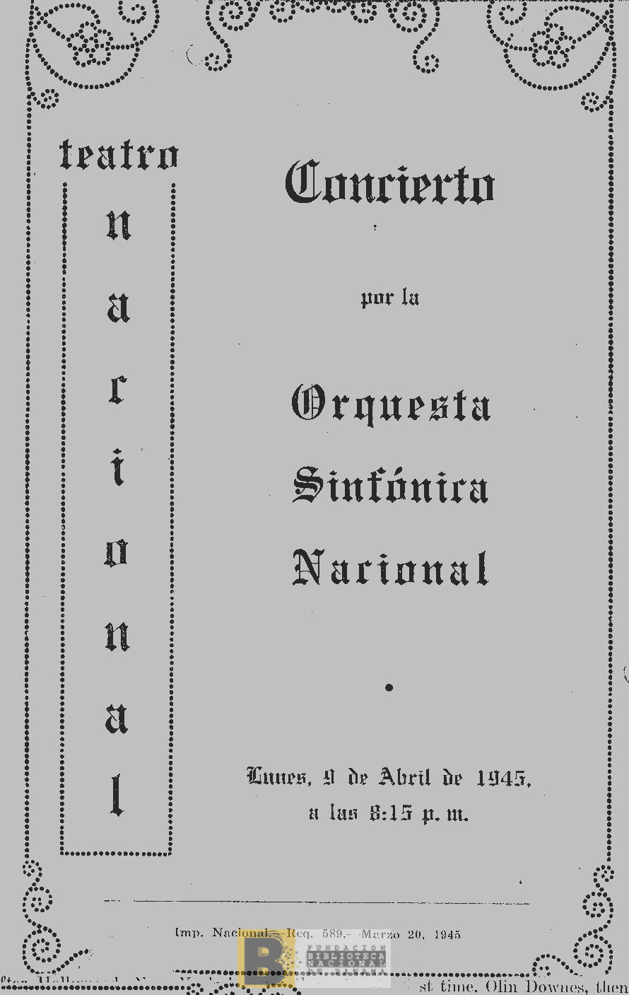 470. Concierto de gala bajo los auspicios de la Primera Dama de la República, Sra. Doña Carmen E. de la Guardia por el pianista Samuel Matlowsky, a beneficio de la santa Iglesia de Catedral