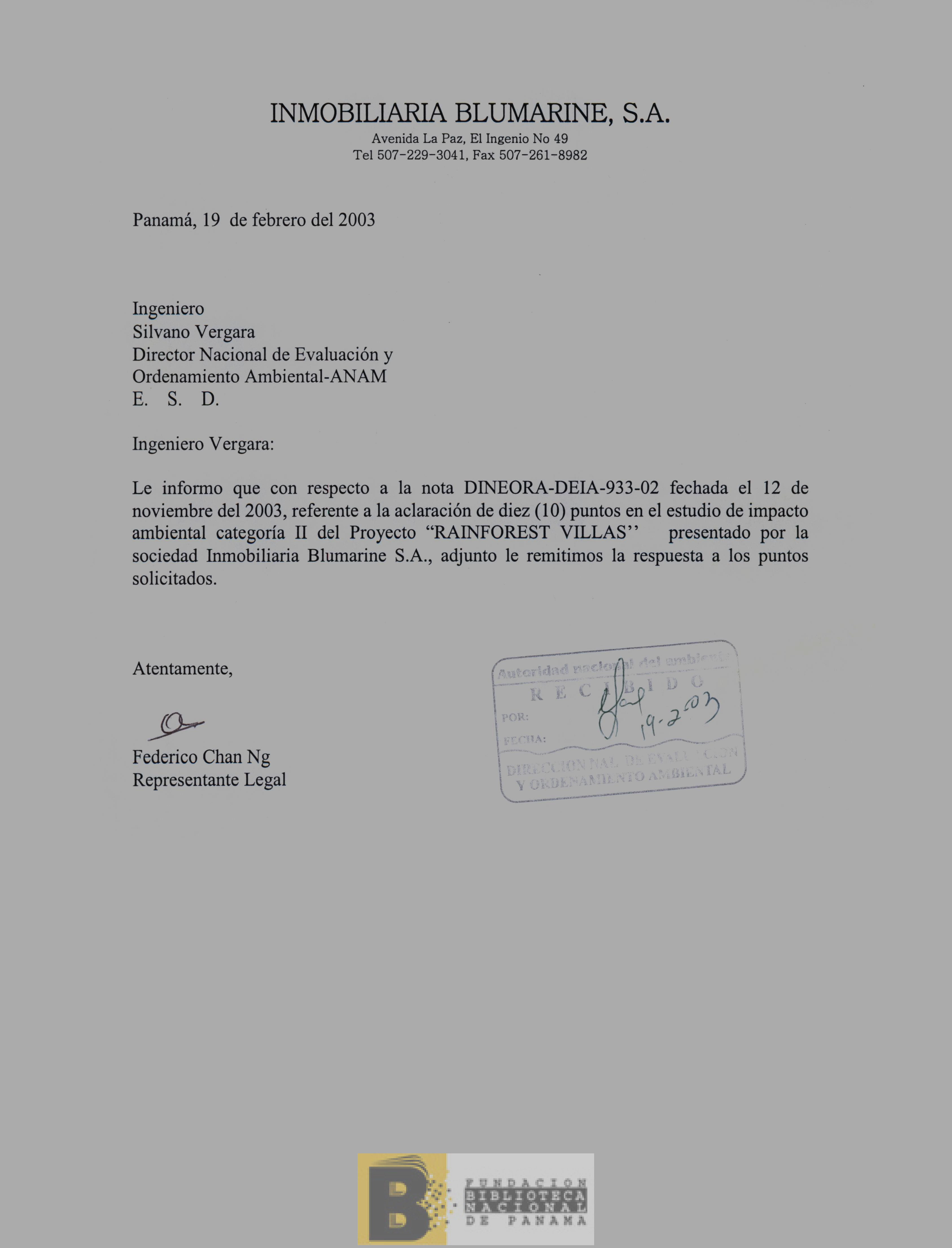 45. Adenda no.1, estudio de impacto ambiental, categoría II: proyecto "Rain Forest Villas"
