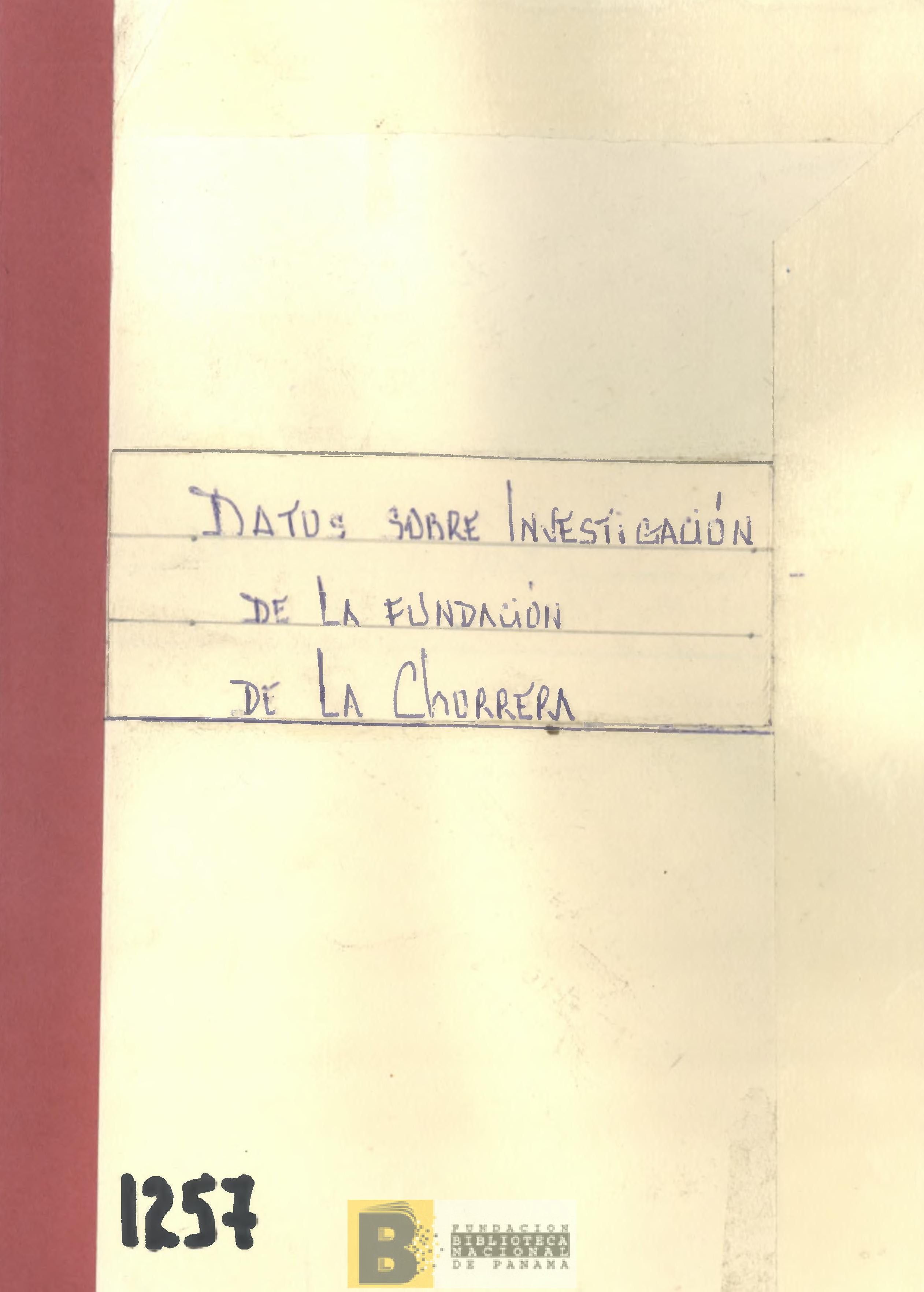 673. Datos sobre investigación de la fundación de La Chorrera