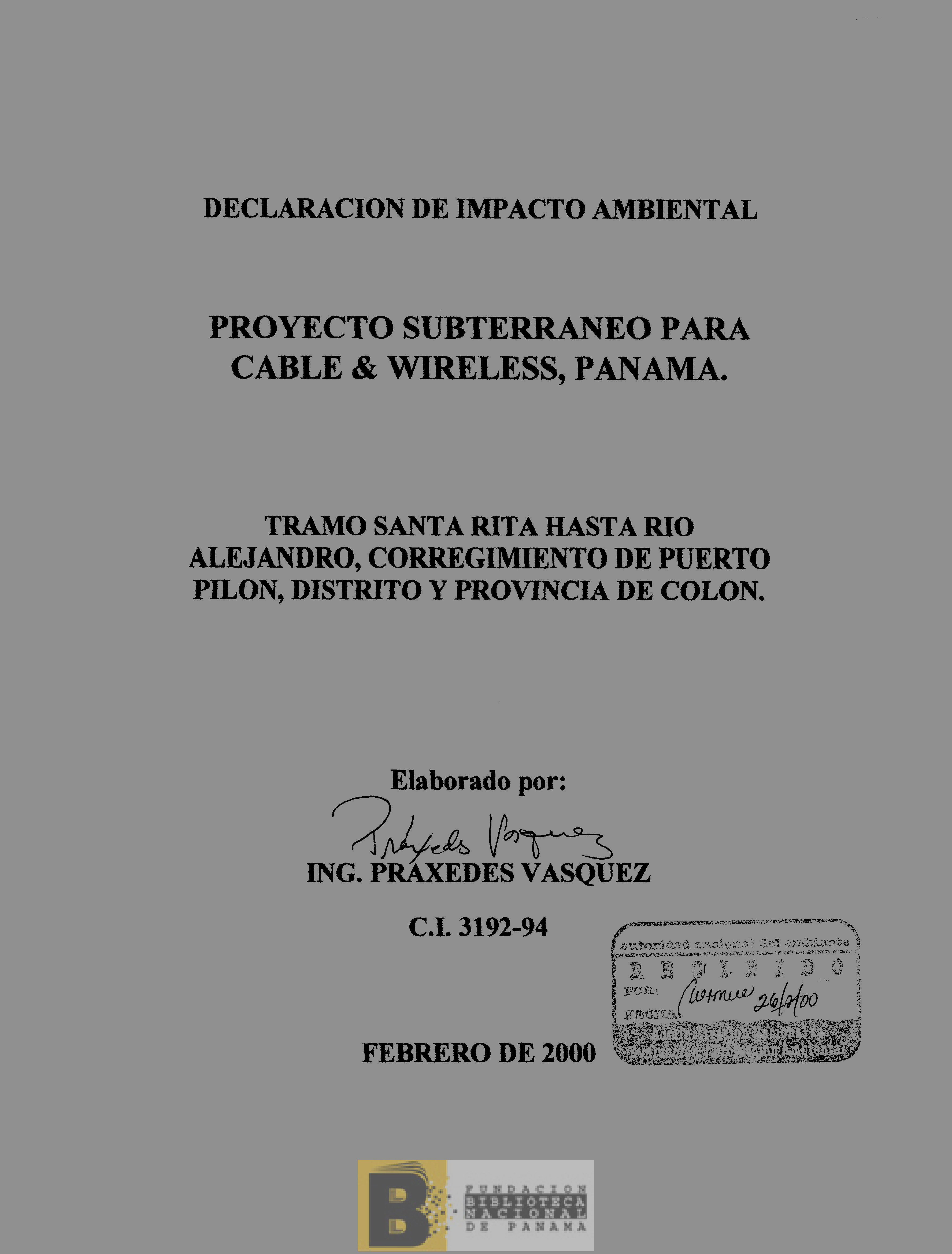 698. Declaración de impacto ambiental: proyecto subterráneo para Cable & Wireless, Panamá