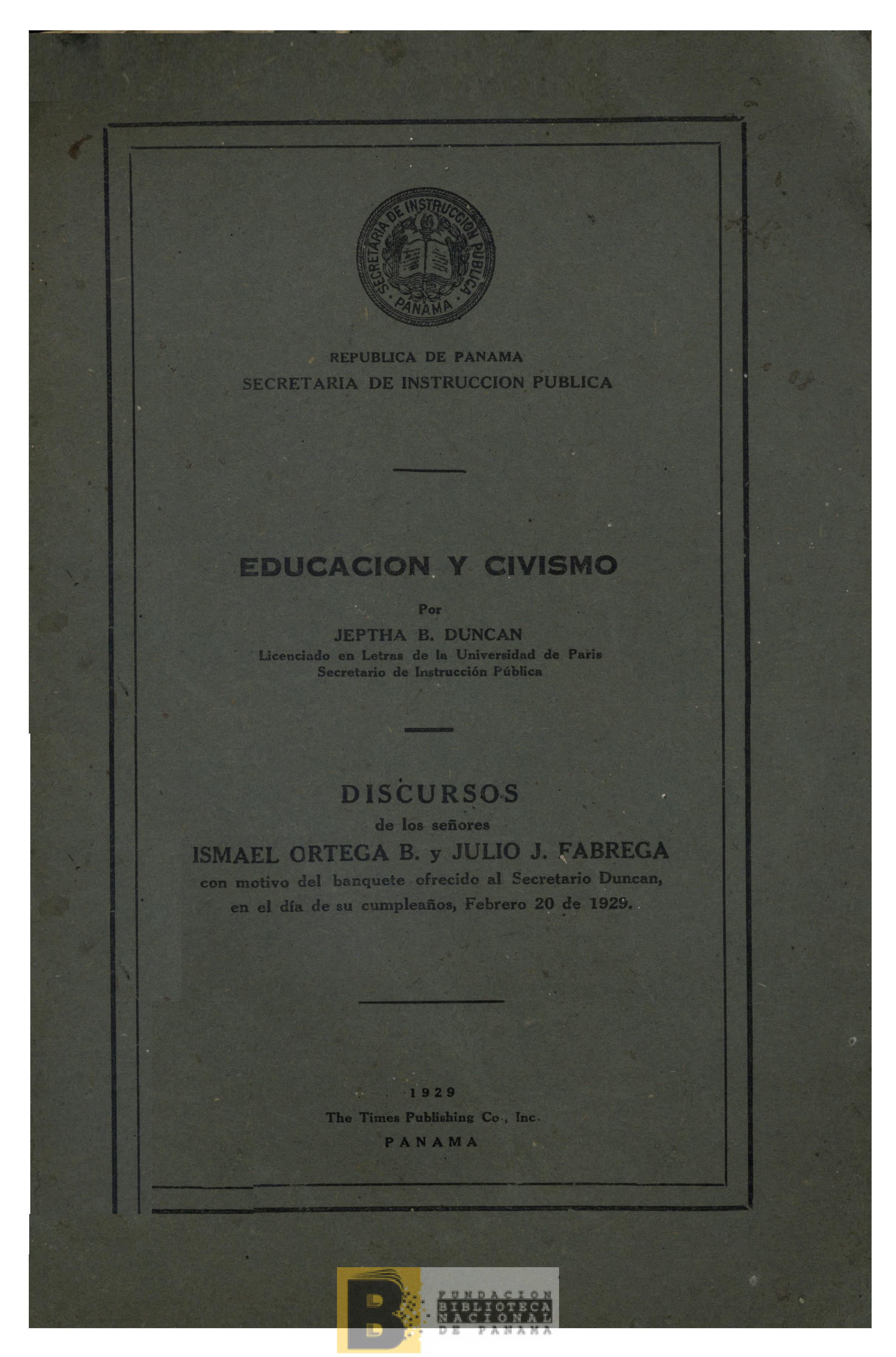 817. Educación y civismo: discursos de los señores Ismael Ortega B., Julio J. Fábrega