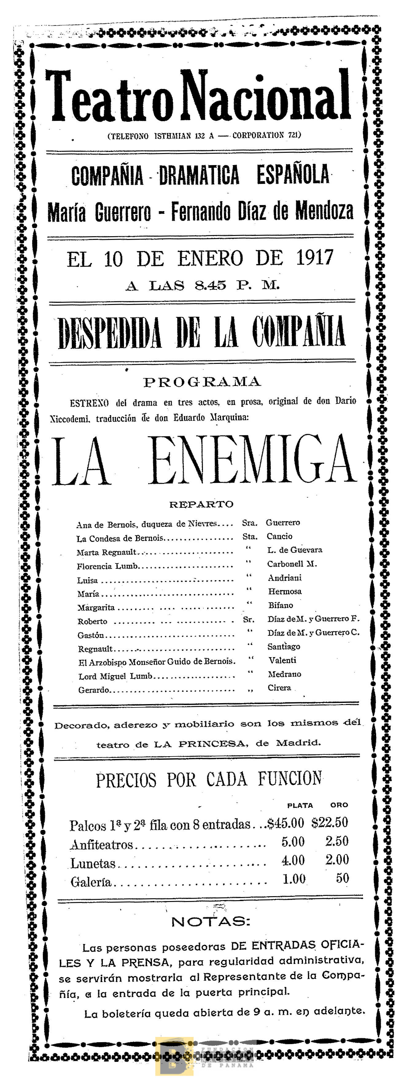 883. Enemigos: pieza en dos actos ; homenaje a don Enrique Ruíz Vernacci ; portada de Herrerabarria