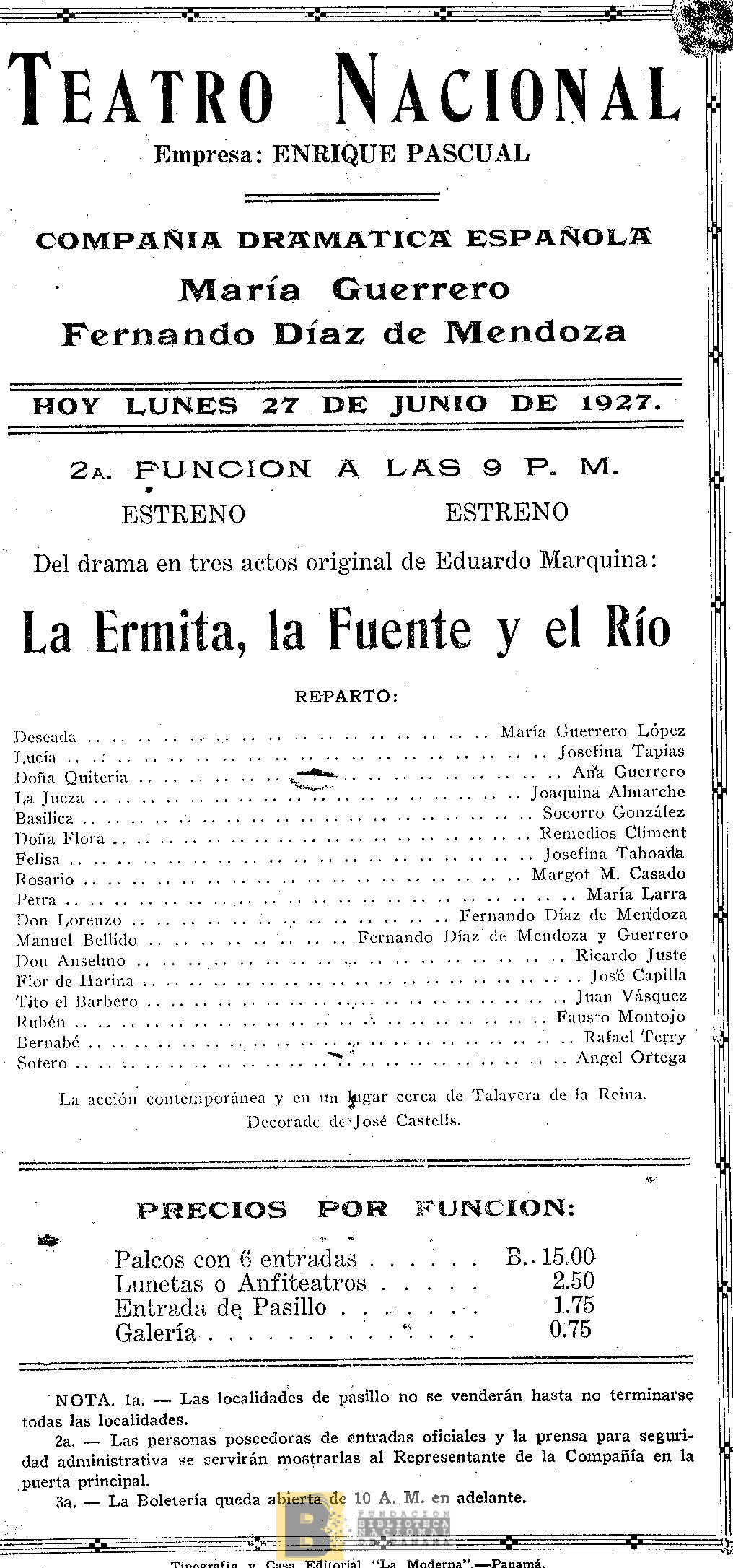 896. La ermita, la fuente y el río: drama en tres actos, original de Eduardo Marquina