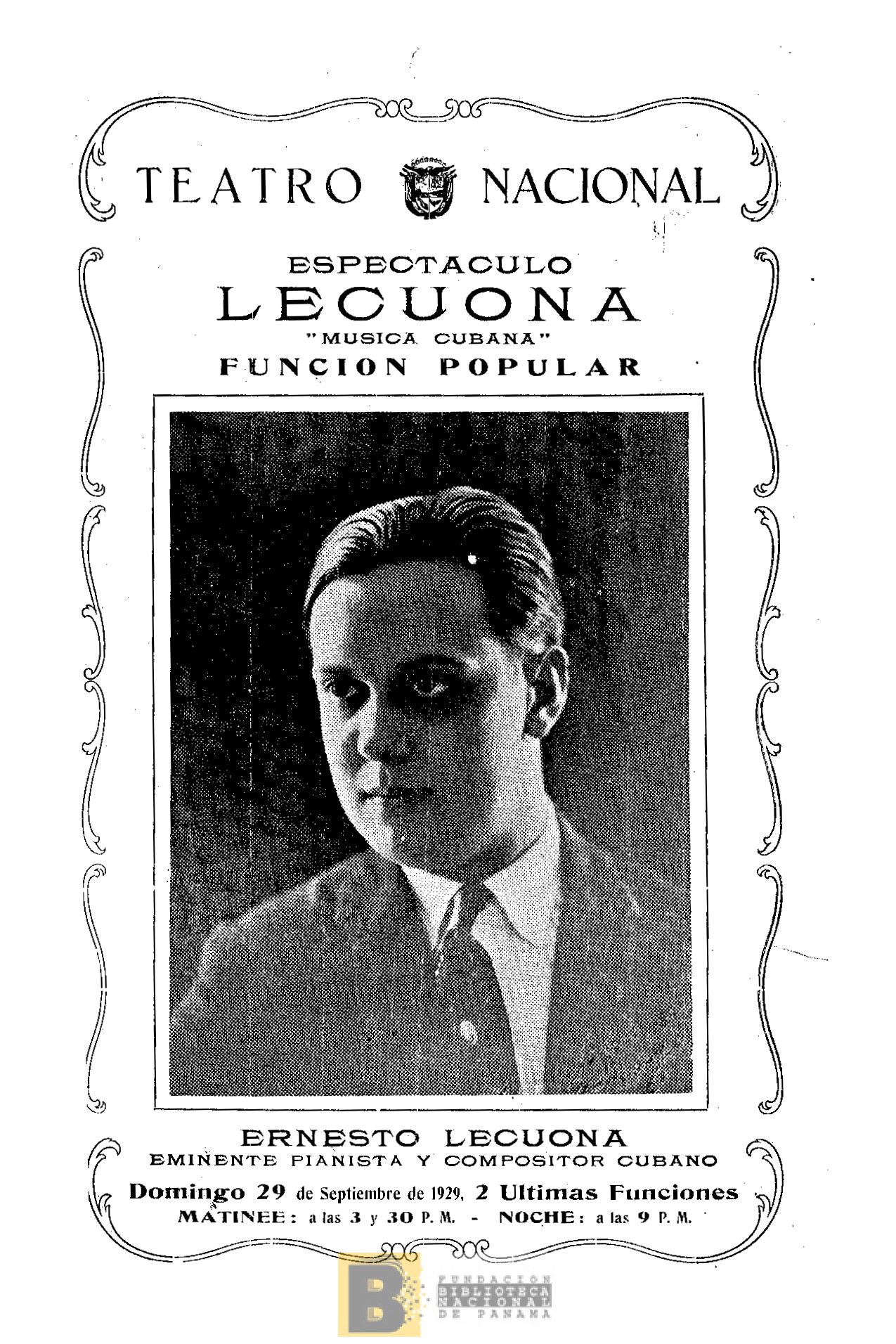 923. Espectáculo Lecuona: música cubana, función popular