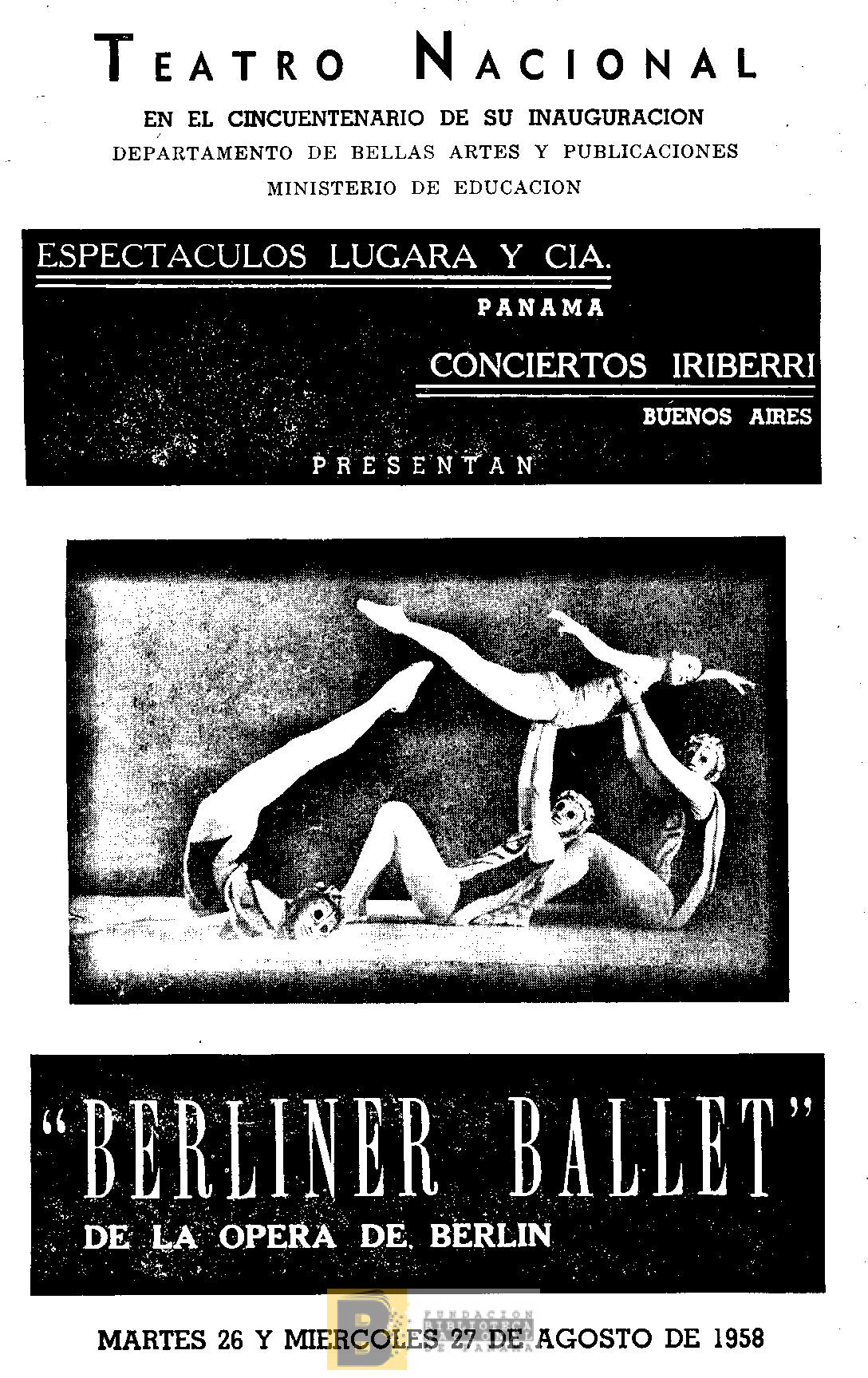 925. Espectáculos Lugara y Cía. de Panamá y Conciertos Iriberri de Buenos Aires presentan "Berliner Ballet" de la Ópera de Berlín