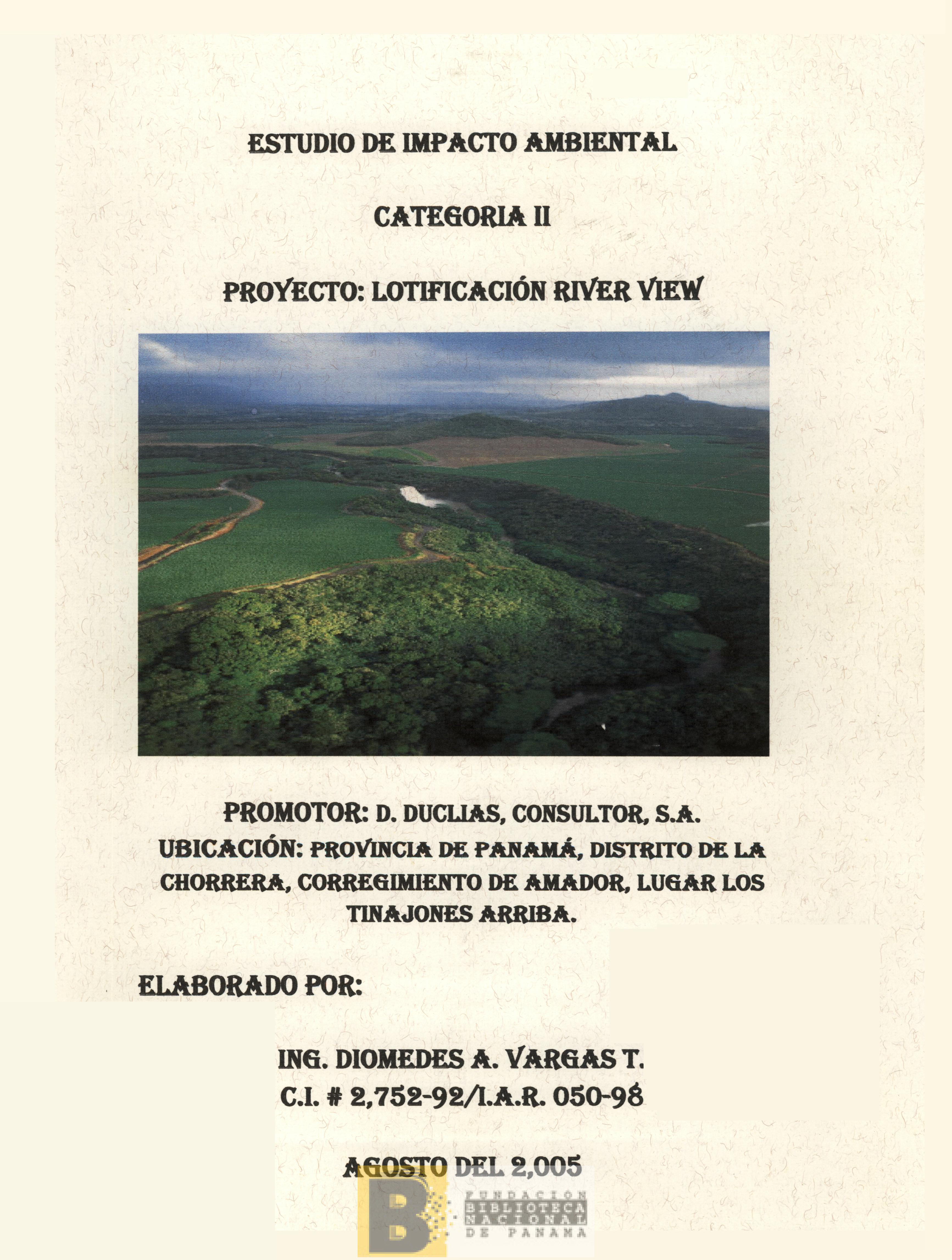 988. Estudio de impacto ambiental categoría II: Proyecto Lotificación River View