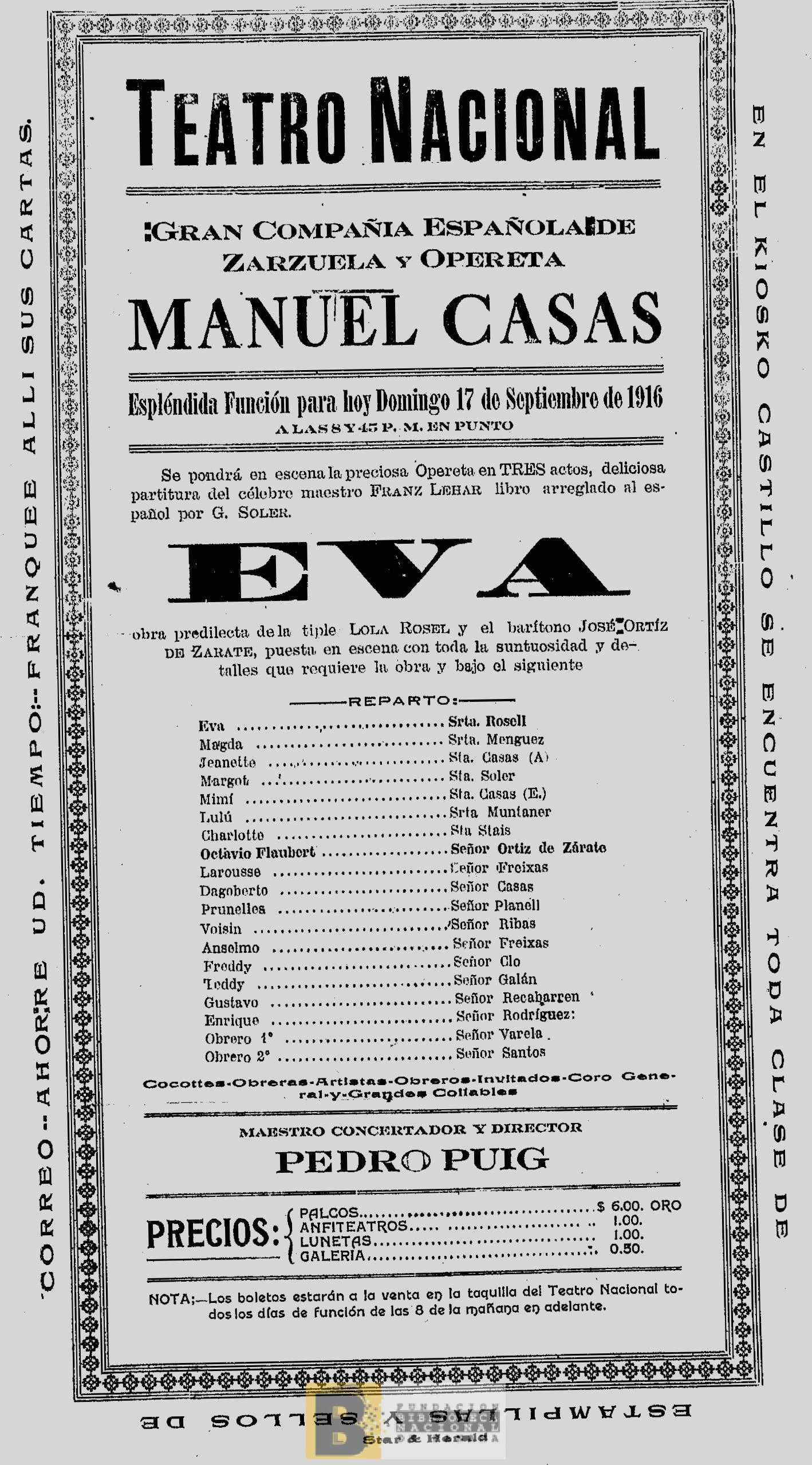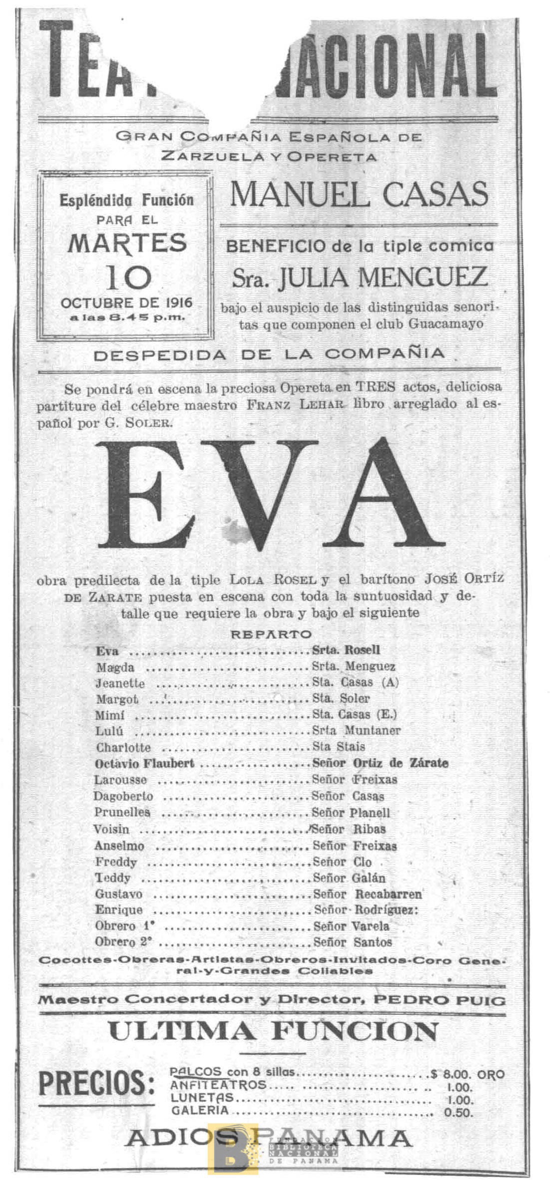 1172. Eva: opereta en tres actos, del célebre maestro Franz Lehar, libro arreglado al español por G. Soler