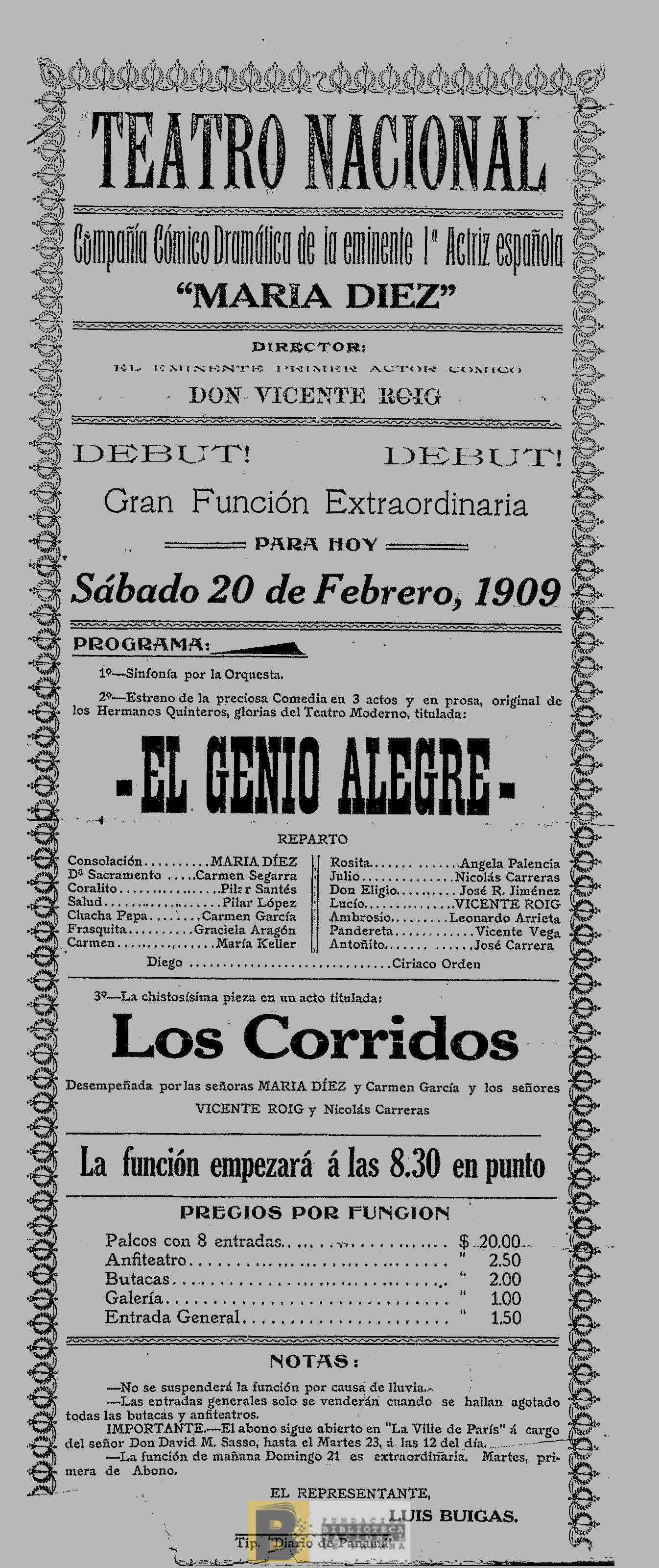 1285. El genio alegre: Comedia en 3 actos y en prosa, original de los Hermanos Quintero, glorias del Teatro Moderno ; Los corridos : pieza en un acto
