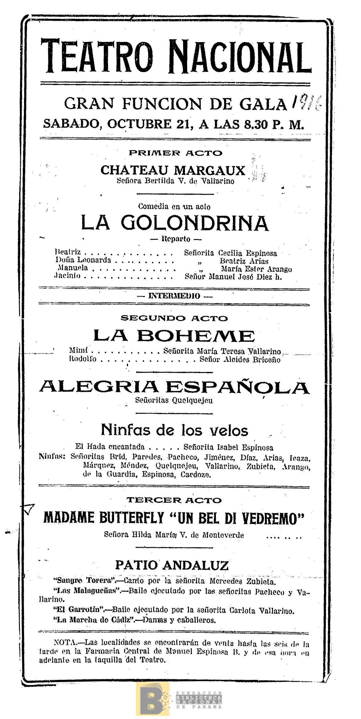 1296. La golondrina: comedia en un acto ; La Boheme ; Madame Butterfly "Un bel di vedremo"