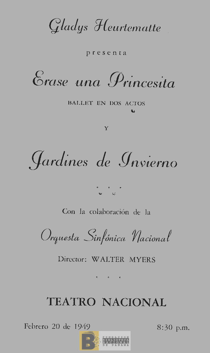 1294. Gladys Heurtematte presenta Érase una princesita, ballet en dos actos y Jardines de invierno con la colaboración de la Orquesta Sinfónica Nacional