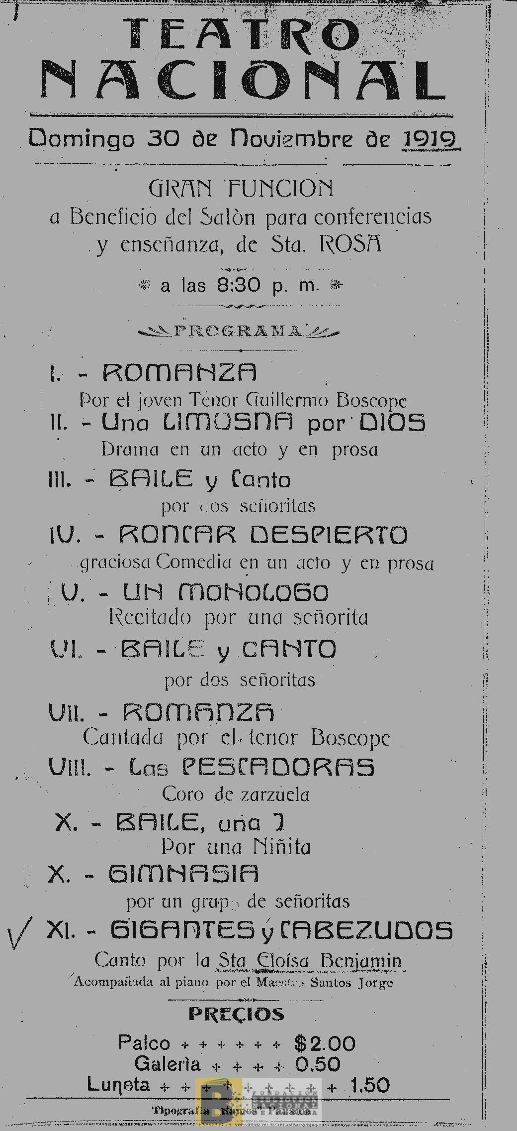 1326. Gran función a beneficio del Salón para conferencias y enseñanza, de Sta, Rosa