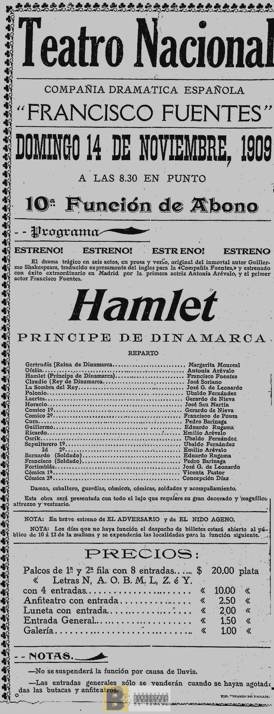 1377. Hamlet: Príncipe de Dinamarca : drama trágico en seis actos, en prosa y en verso, original del inmortal autor Guillermo Shakespeare