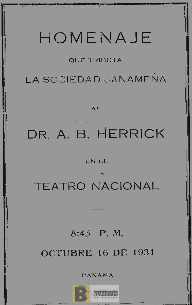 1409. Homenaje que tributa la sociedad panameña al Dr. A.B. Herrick en el Teatro Nacional