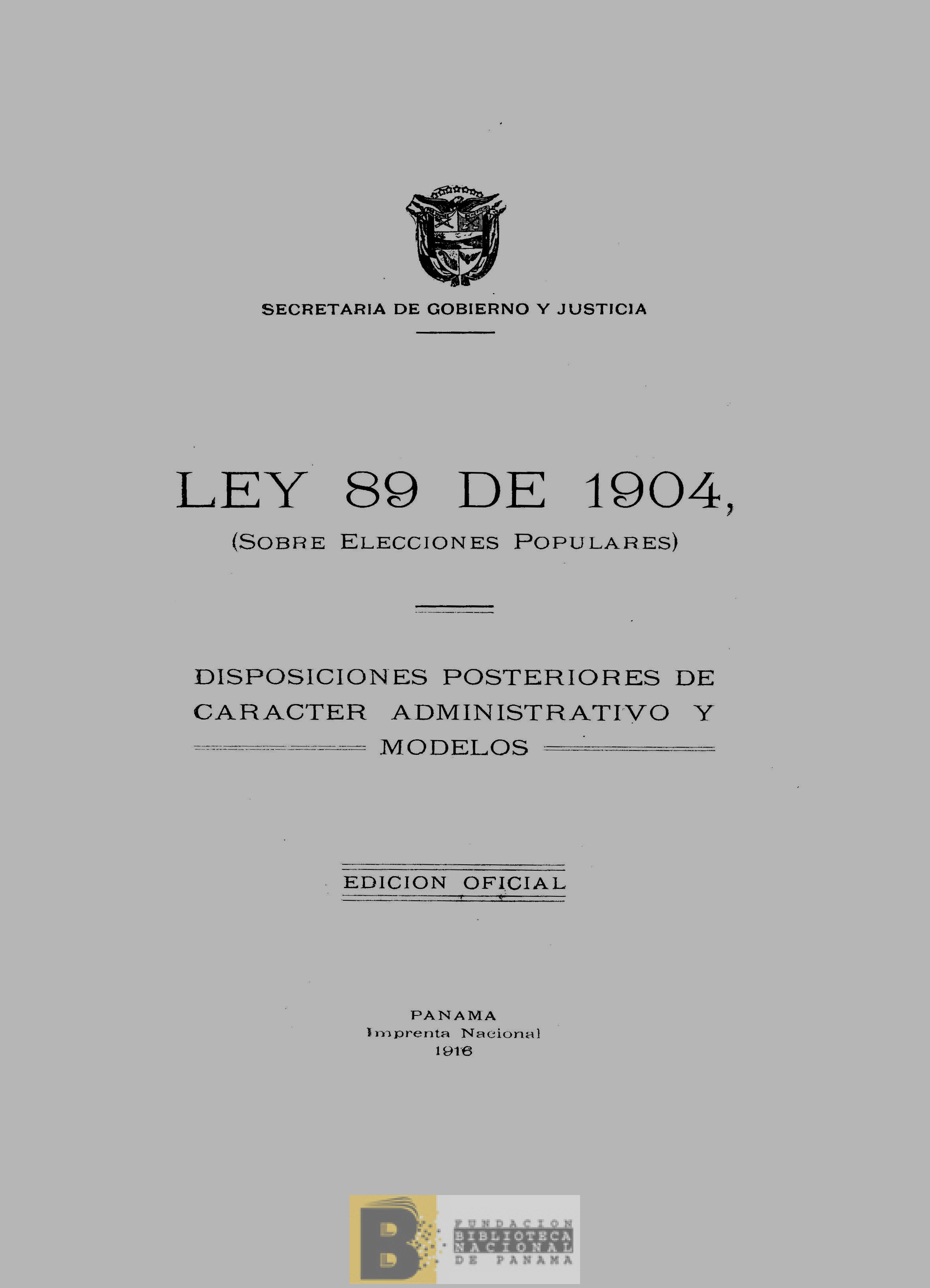 1682. Ley 89 de 1904, sobre elecciones populares: disposiciones posteriores de carácter administrativo y modelos
