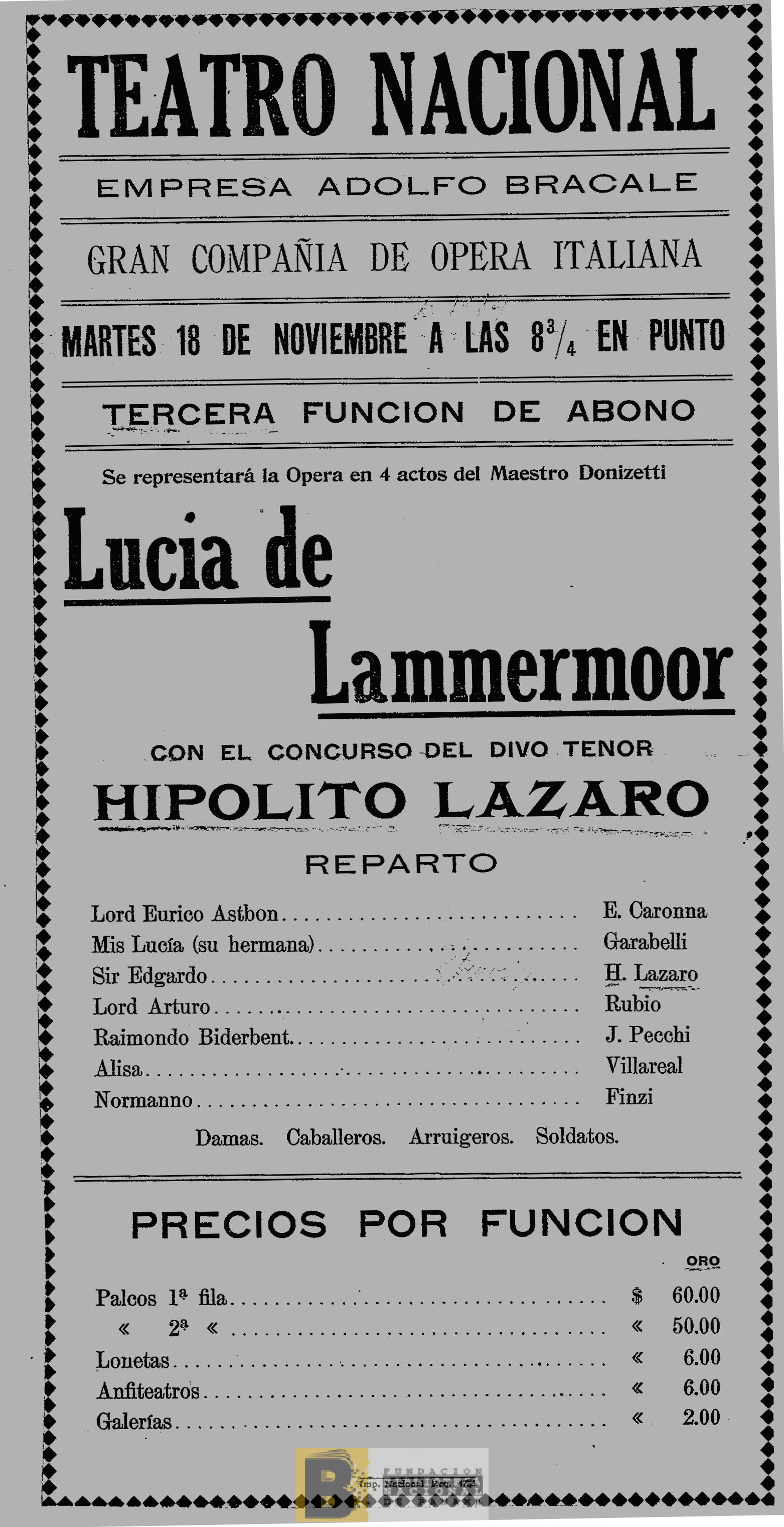 1793. Lucia di Lammermoor: ópera en 4 actos del maestro Donizetti