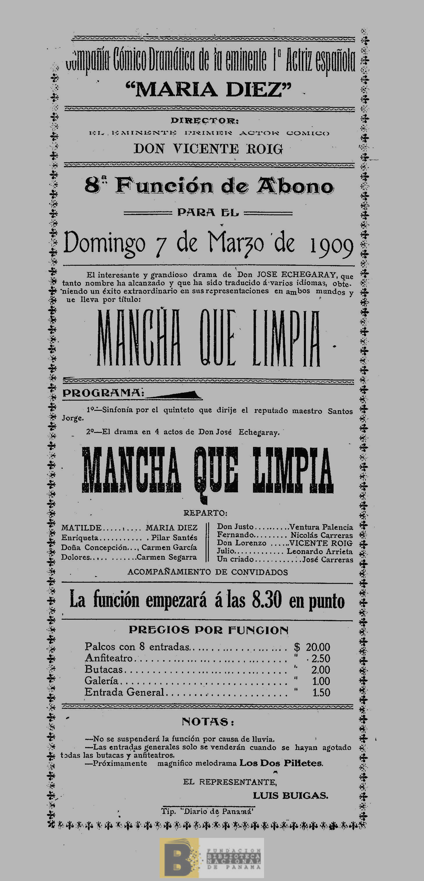 1822. Mancha que limpia: drama en 4 actos de don José Echegaray